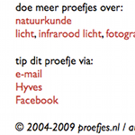 ![]() | Tip proefjes op Hyves en FacebookAls je een proefje bent tegengekomen dat je wilt laten zien aan anderen, dan kan dat nu heel eenvoudig. Onderaan ieder proefje staan links om het proefje te tippen via e-mail en via de netwerksites Hyves en Facebook. |